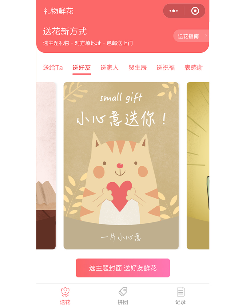 該微信公眾號(hào)是專業(yè)的鮮花網(wǎng)絡(luò)購(gòu)物平臺(tái),應(yīng)用開(kāi)發(fā)功能模塊有首頁(yè)、拼團(tuán)、記錄等等。